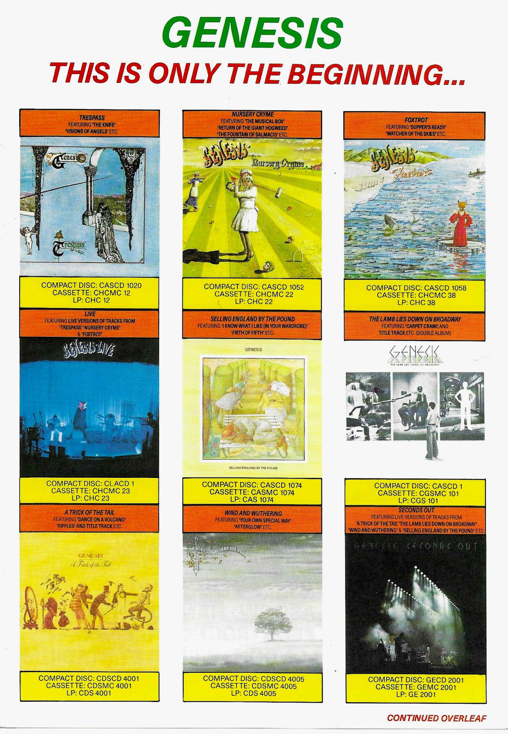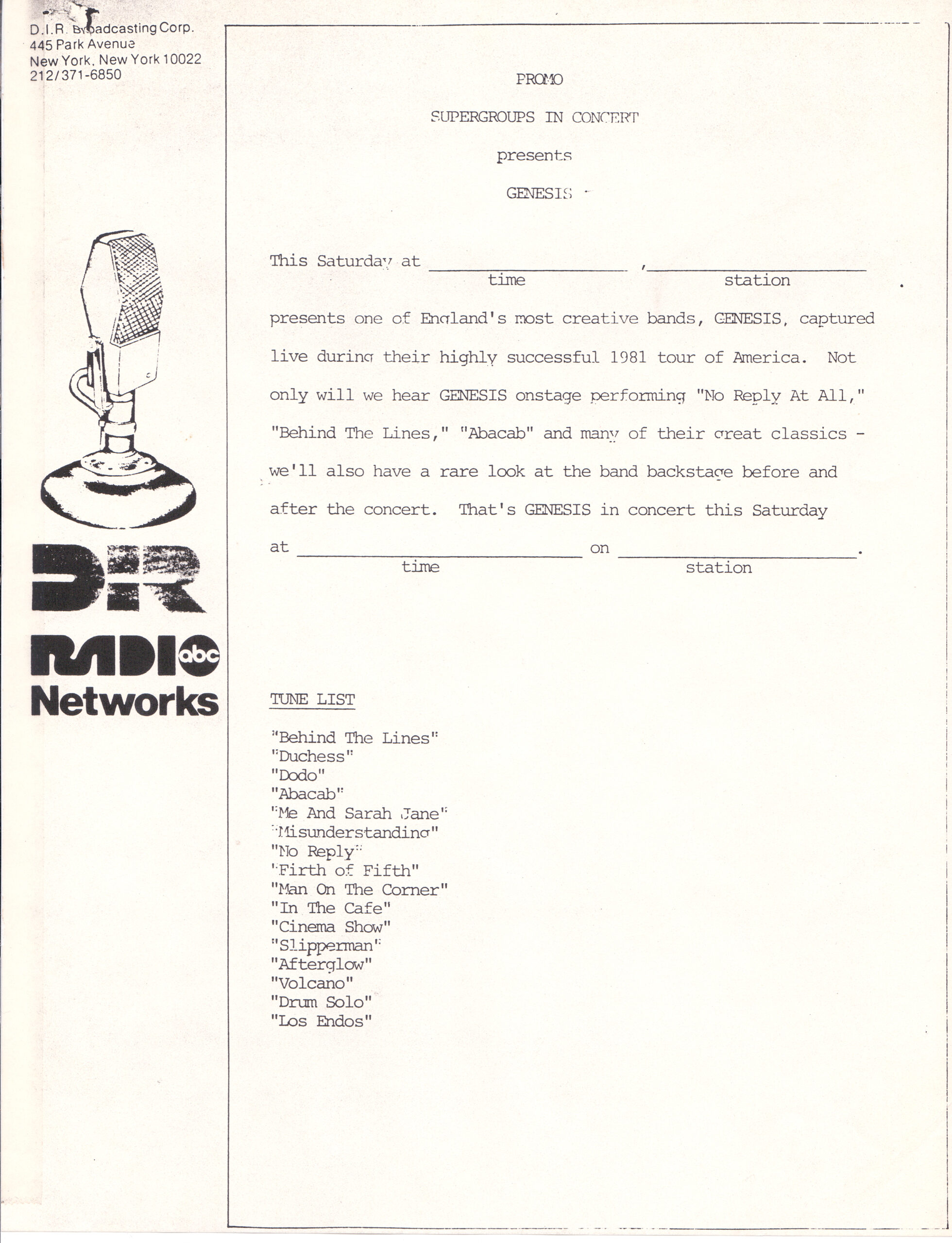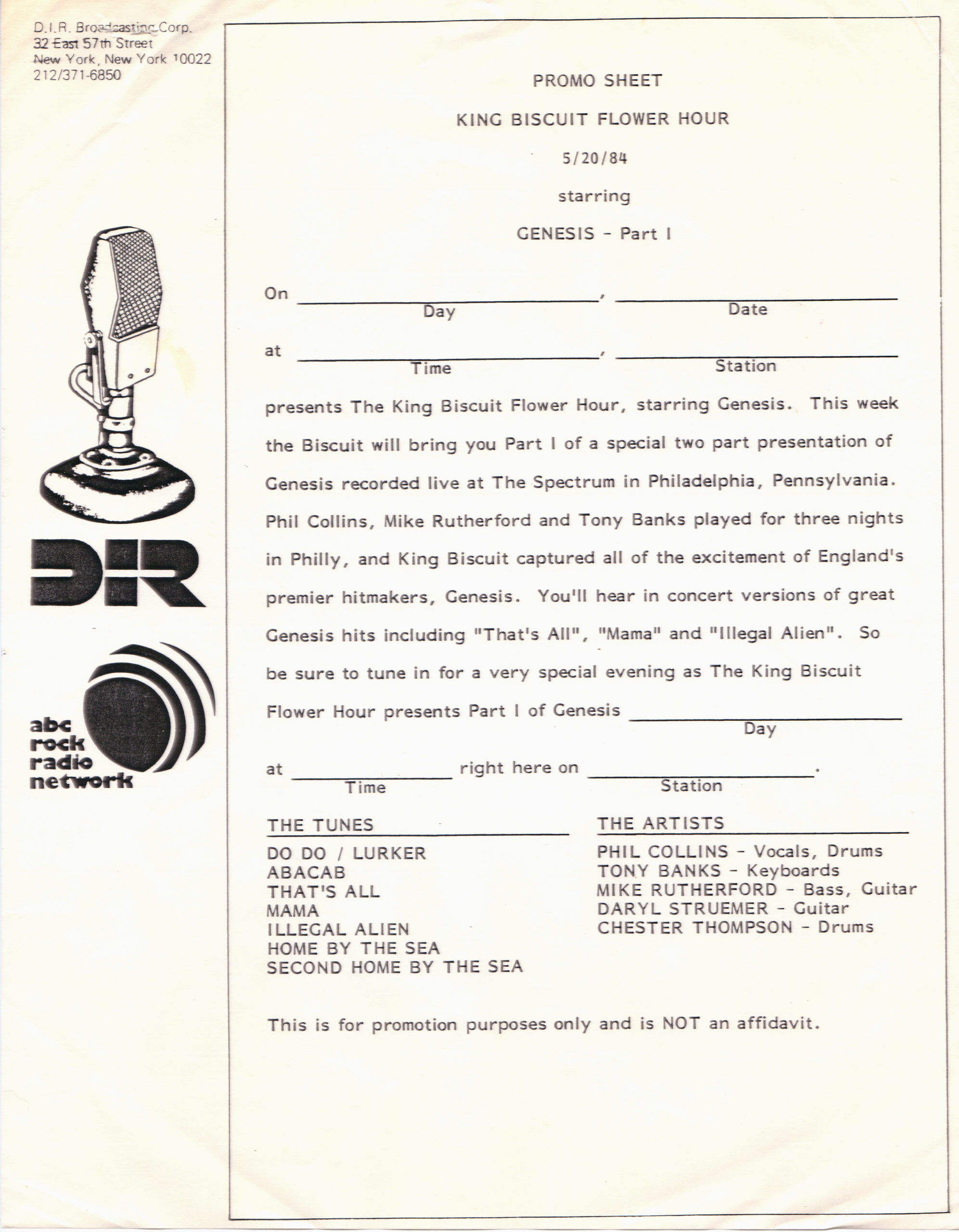 And as an aside, you may have noticed on the previous pages (and on this page as well) that I sometimes use the narrative descriptions from Discogs in my descriptions here. That is because in almost every case, I was the original submitter of the items on Discogs. Especially the Genesis and Phil Collins material. When I joined Discogs, most of these radio transcription shows did not exist on the site. Thus, it fell to me to add them. So I am not plagiarizing when I utilize those notes, I am simply copying what I originally provided to that site. If you have any questions about the shows listed here, please reach out to me via the Contact Me page.