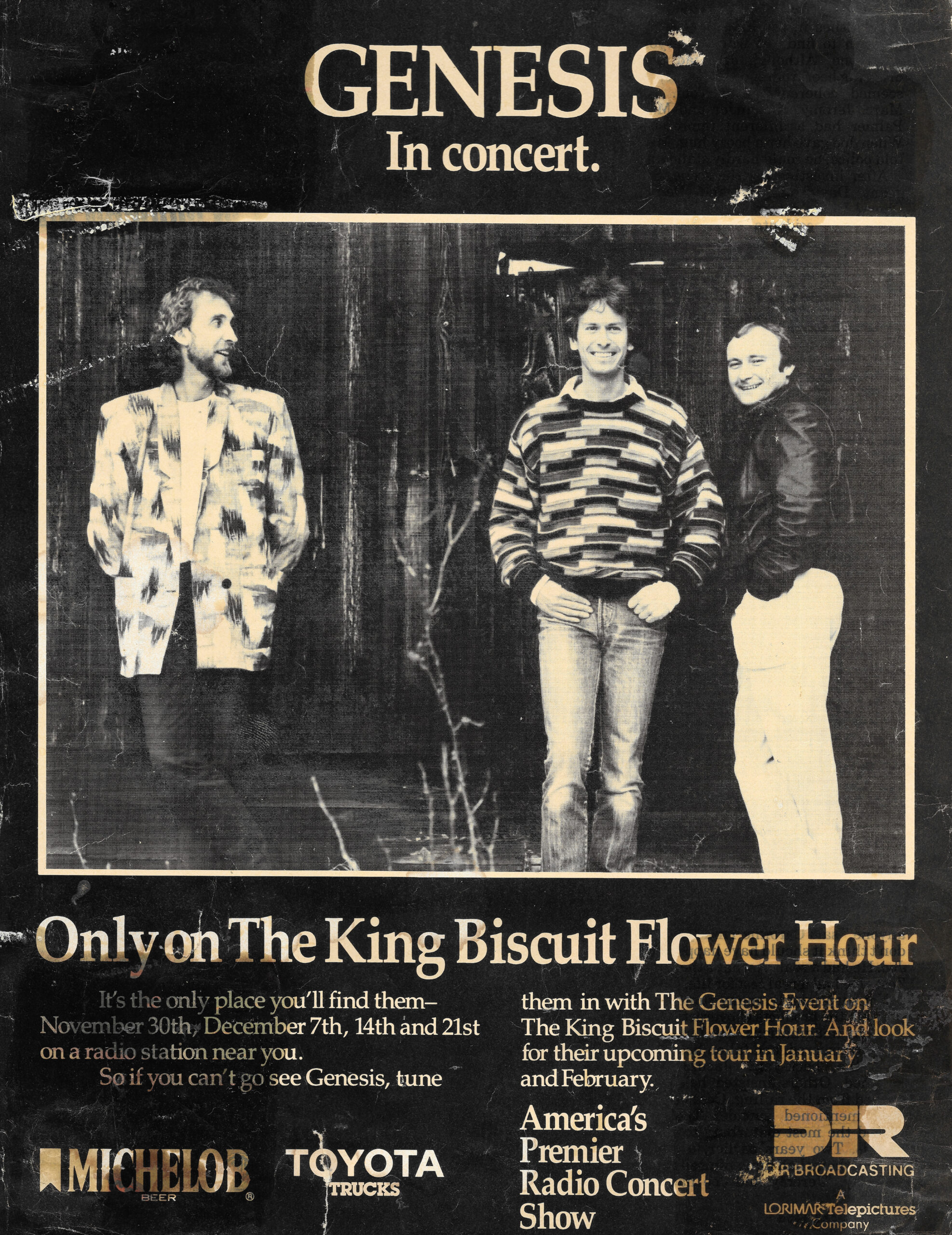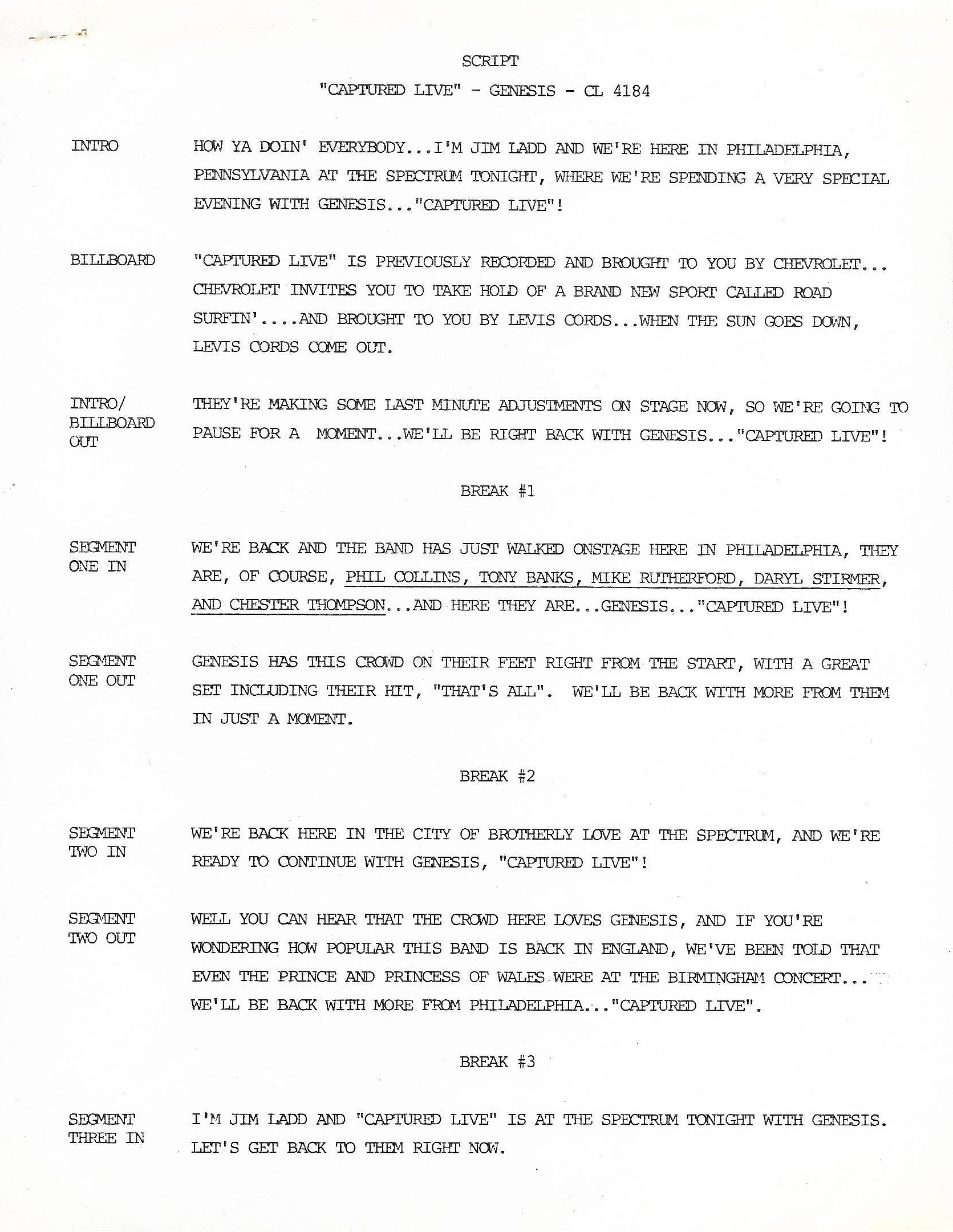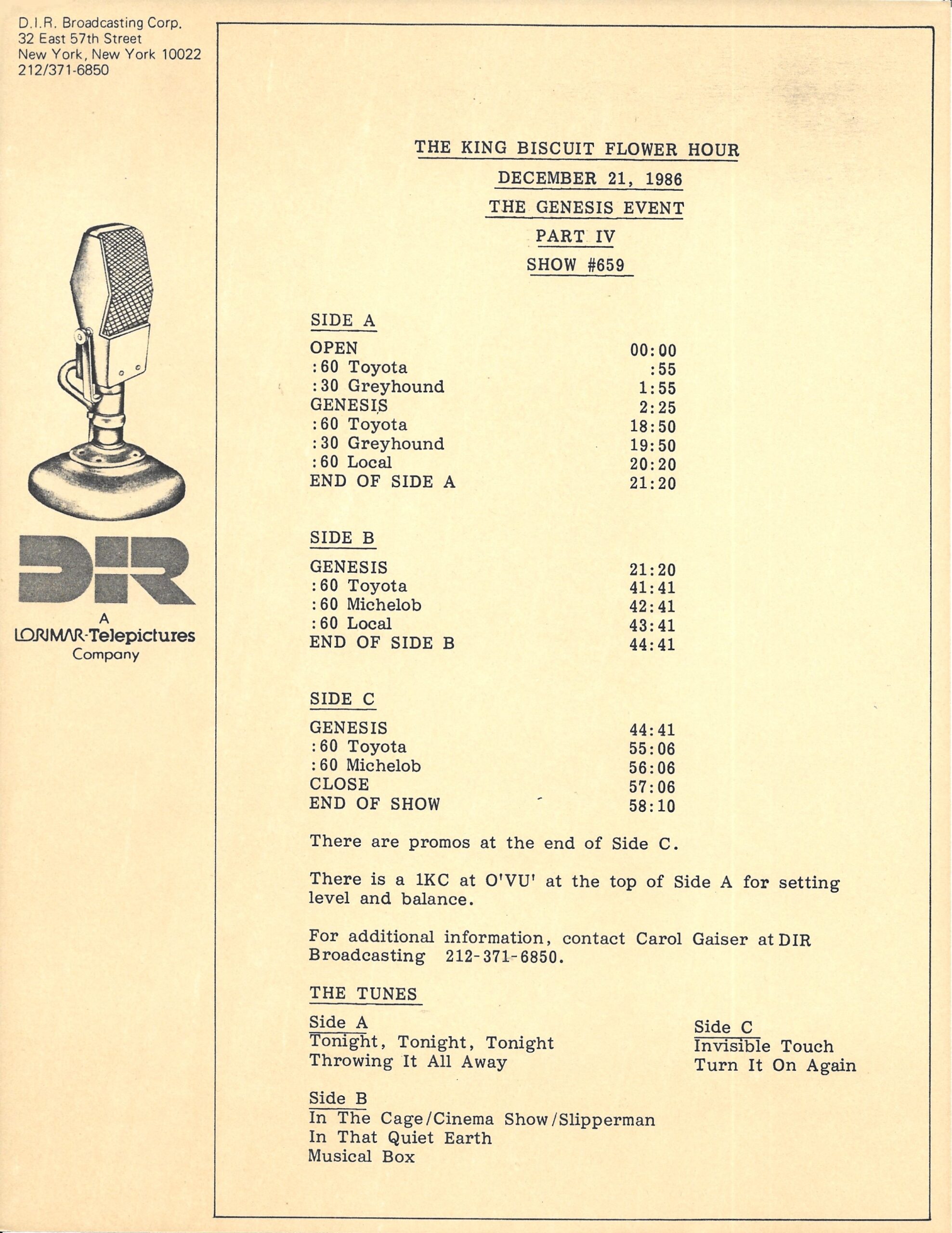 *One Note: On this page you will find every Genesis radio transcription concert show that I own. Unlike the Phil Collins concerts, these shows are not listed elsewhere on this site because, as mentioned in the Complete Phil Collins Radio Guide, Dave Dunnington has done a fantastic job of cataloging all of the Genesis shows on his site. You can see that list HERE. I am not intending to be redundant by listing some of those same shows here. Again, I am simply cataloging the shows that I have in my collection. So let’s get started…