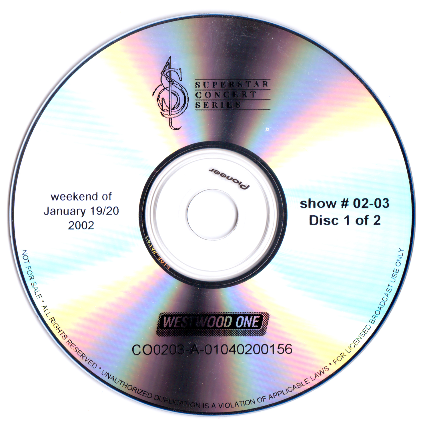 While this exact item is not currently listed on Discogs, there is an earlier broadcast disc with the same show and track listing, which can be found here: