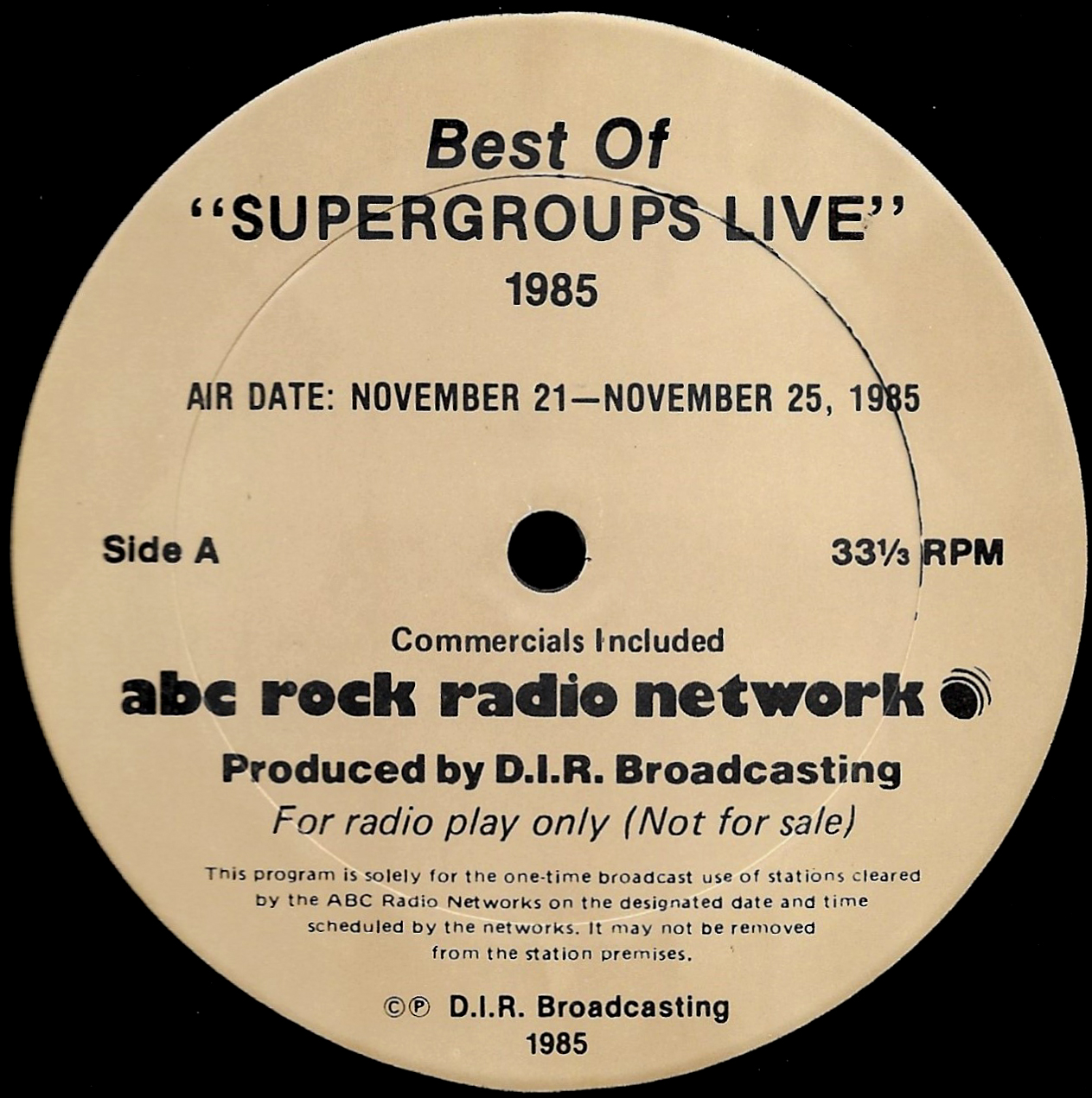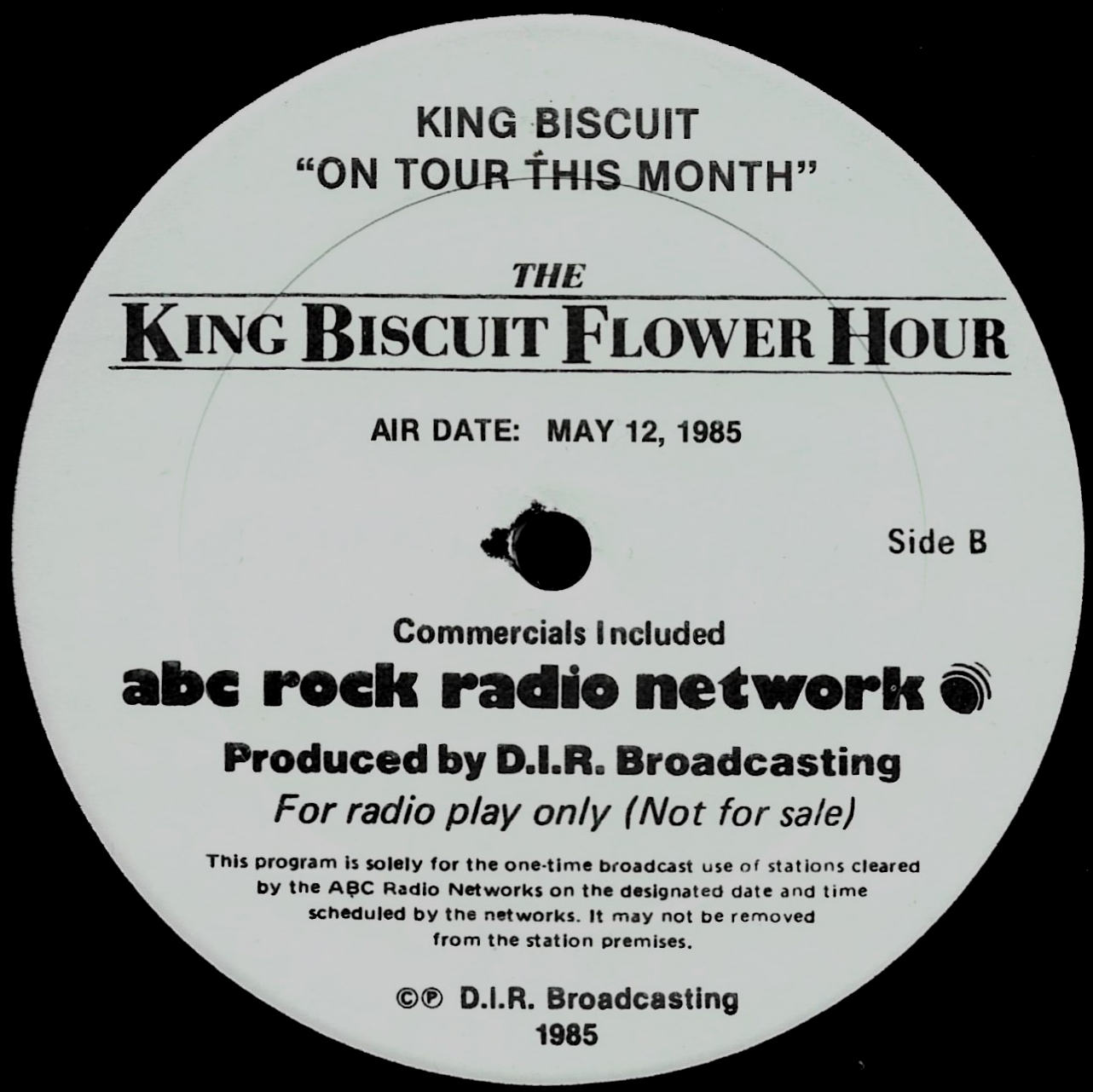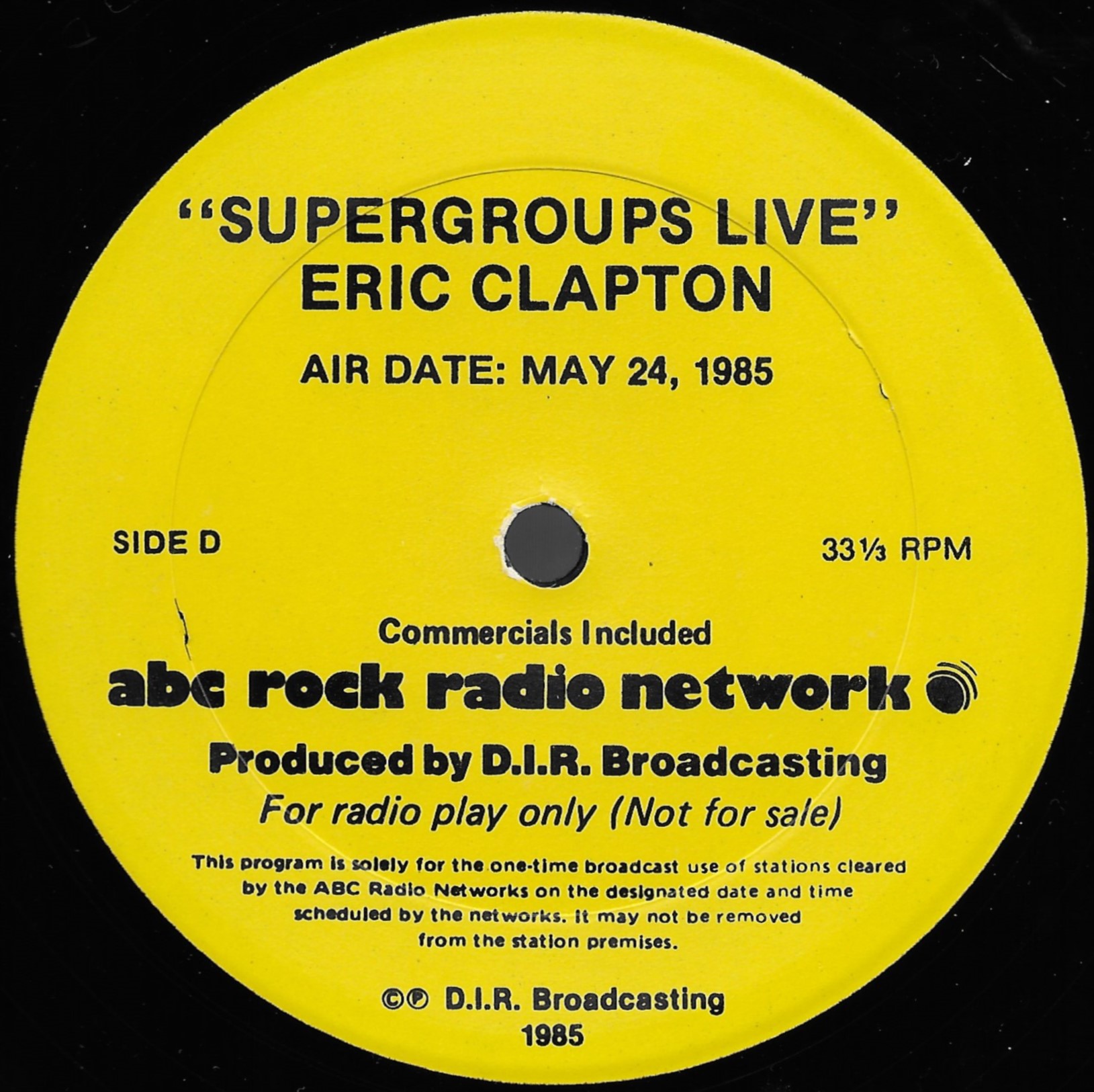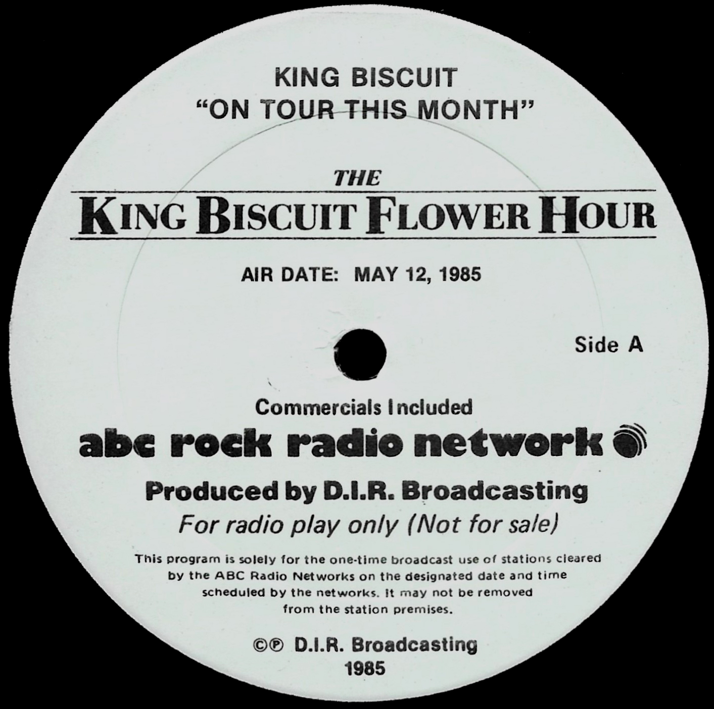 Tracks from the album are played, and there are commercial blocks as well. There are five tracks on the CD. From my personal collection.