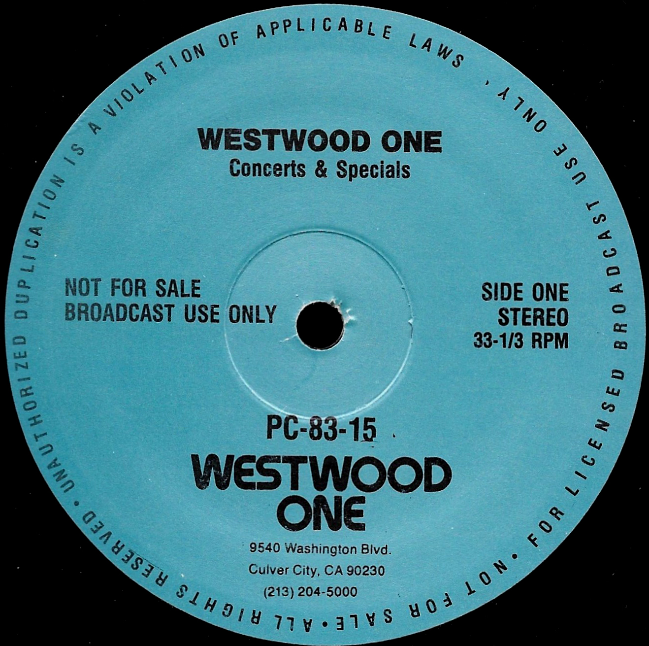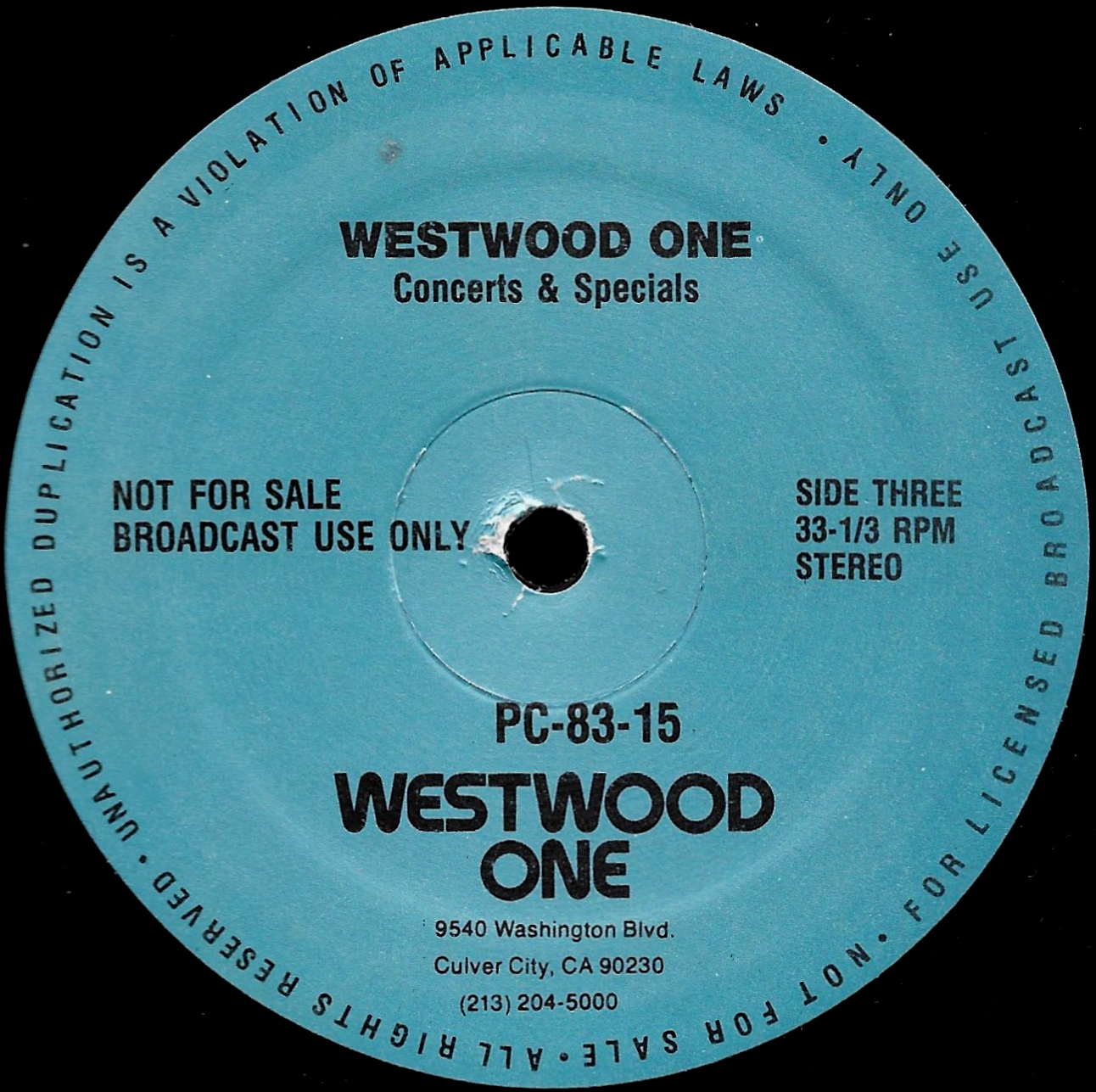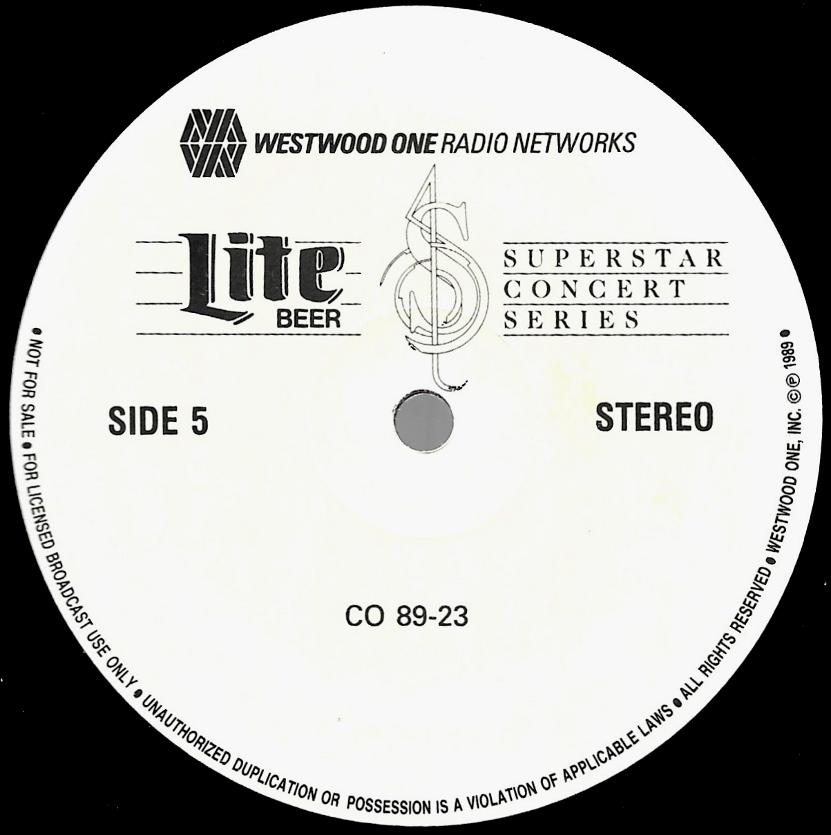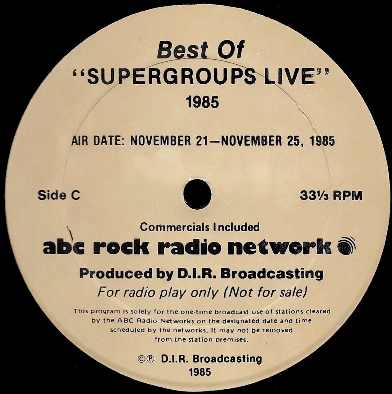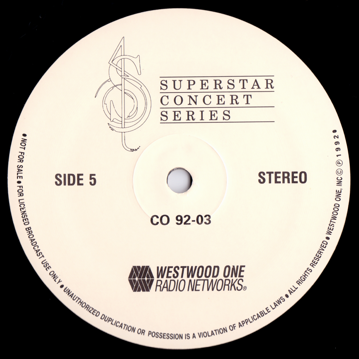Tracks from the album are played, and there are commercial blocks as well. There are five tracks on the CD. From my personal collection.