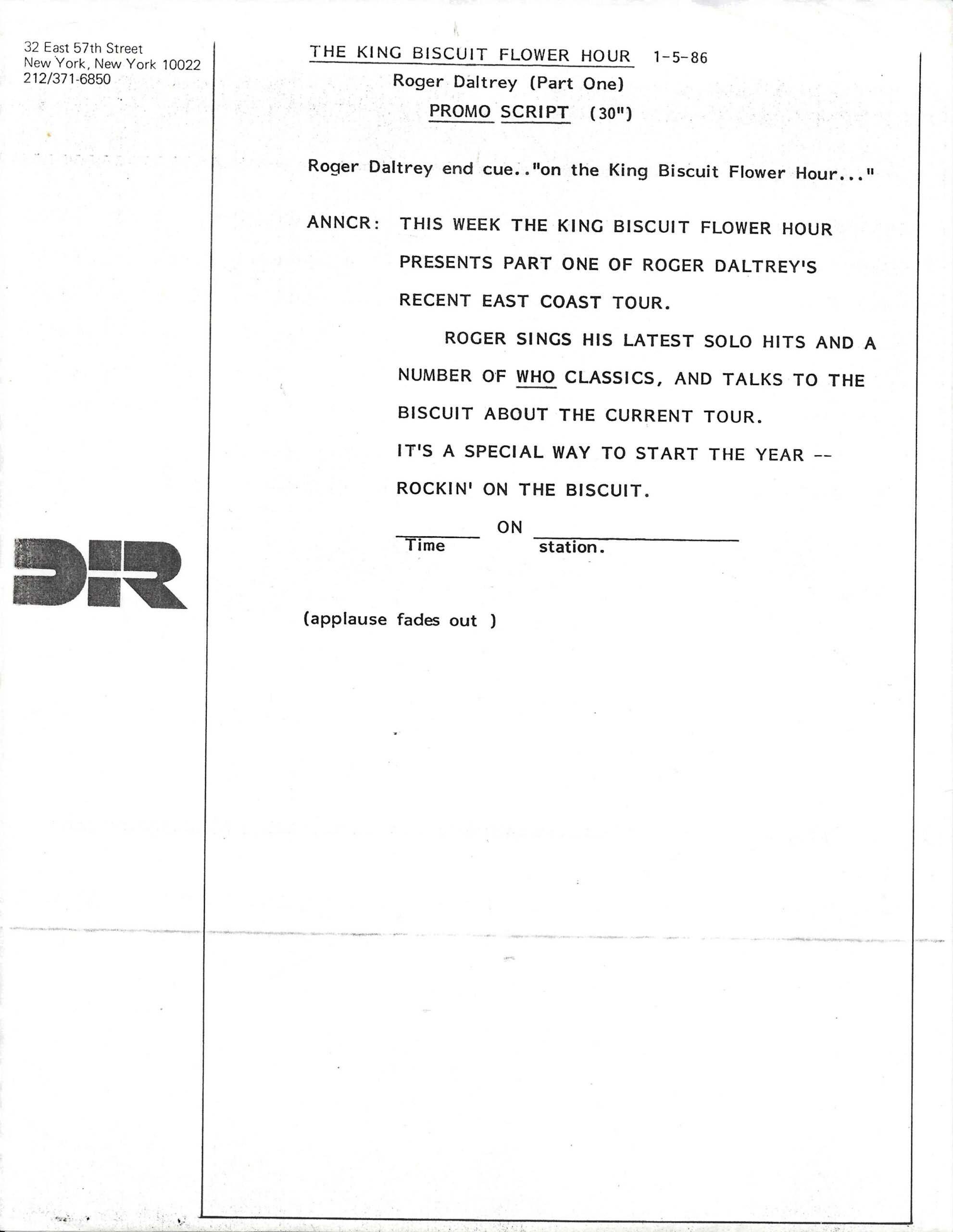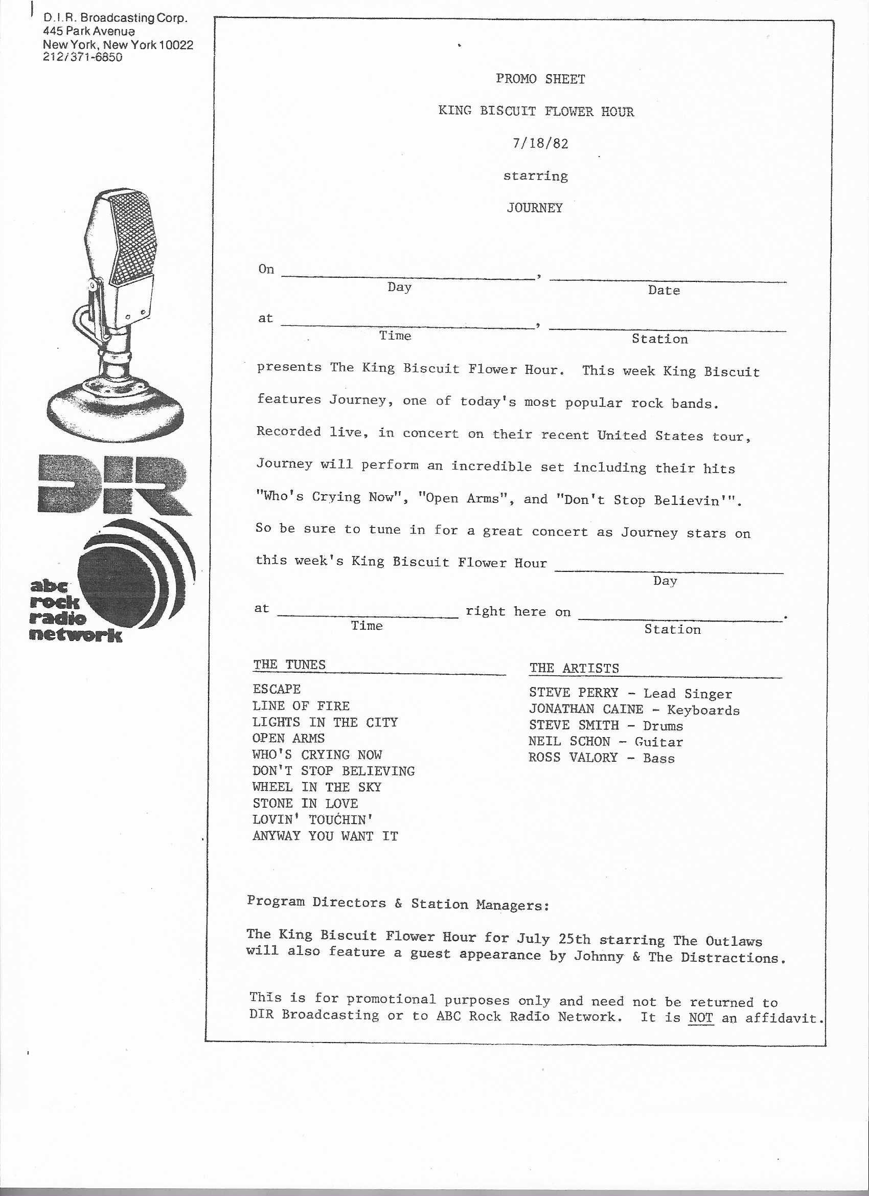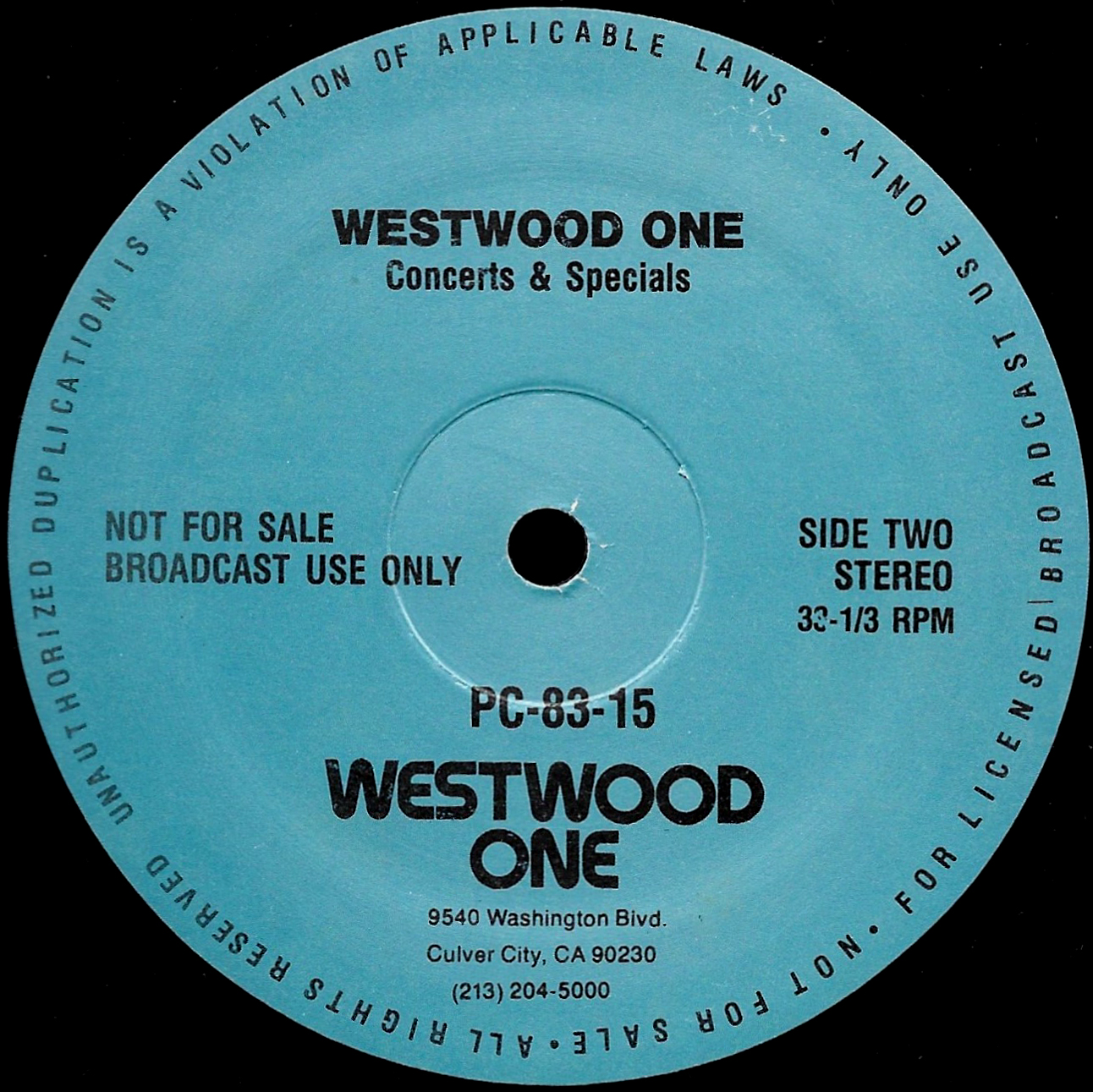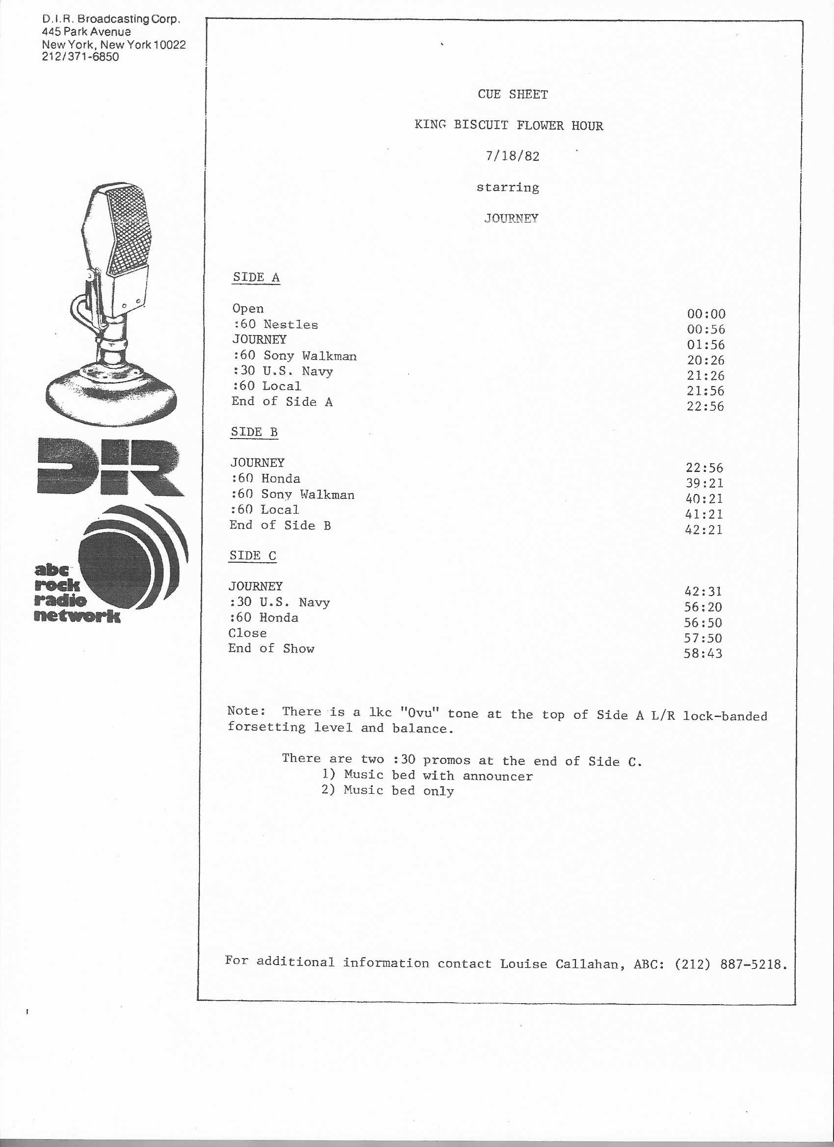 Tracks from the album are played, and there are commercial blocks as well. There are five tracks on the CD. From my personal collection.