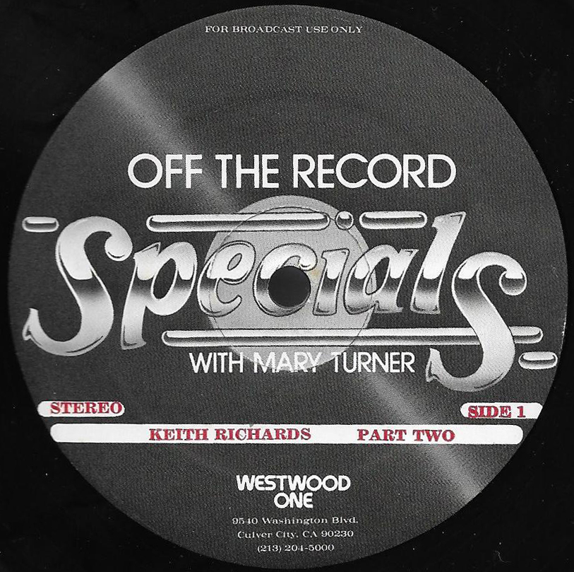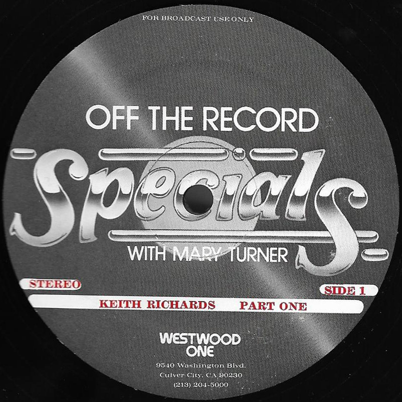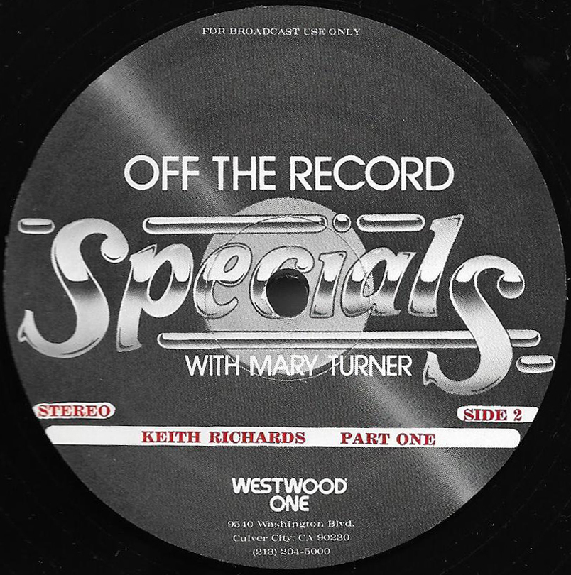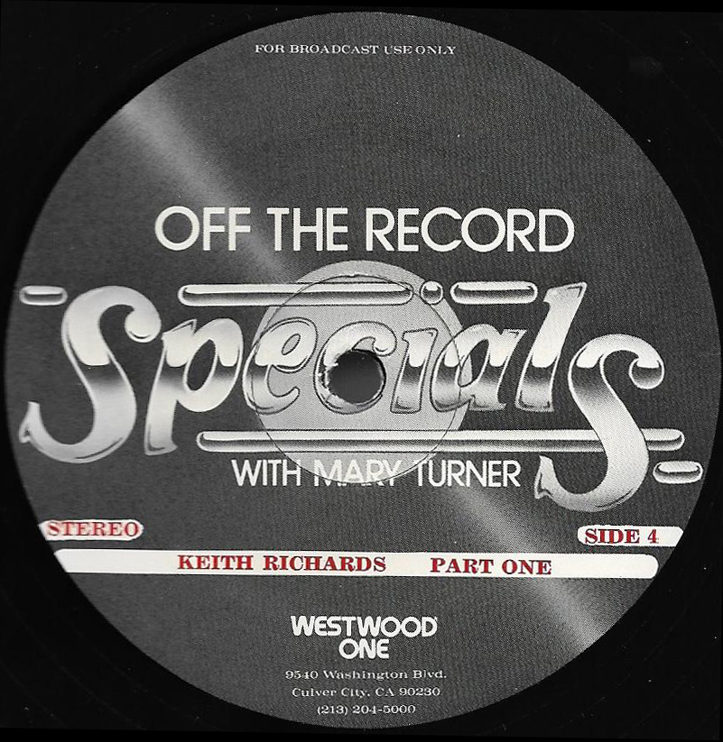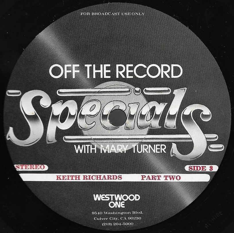 Host Mary Turner interviews Keith Richards in a two part show; Part I of which is featured on this two LP set. (Part II is listed as show # 81-22, and can be found below.) The discussion centers on The Rolling Stones formation and early years. Commercial blocks and studio tracks are mixed with conversations between Richards and Turner, who appear in the studio together. Released on translucent vinyl.