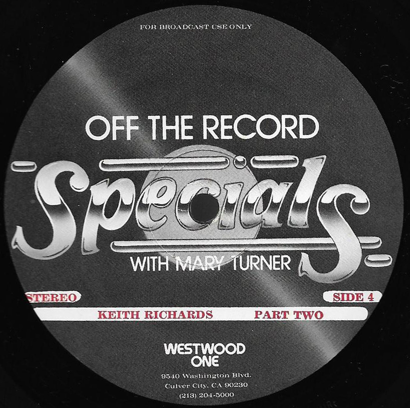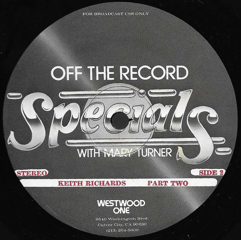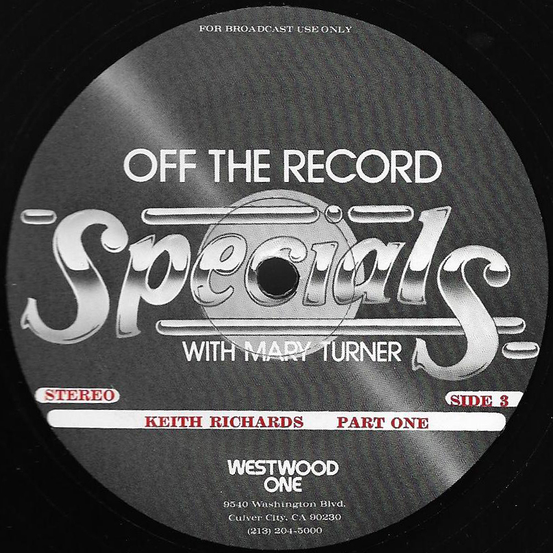 Turner continues her discussion with Keith Richards in this two part show; Part II of which is featured on this two LP set. (Part I is listed as show # 81-21, and can be found above.) The discussion centers on the success of The Rolling Stones, Brian Jones’ death, writing with Mick Jagger and the inception of The Glimmer Twins. Commercial blocks and studio tracks are mixed with conversations between Richards and Turner, who appear in the studio together. Released on translucent vinyl.