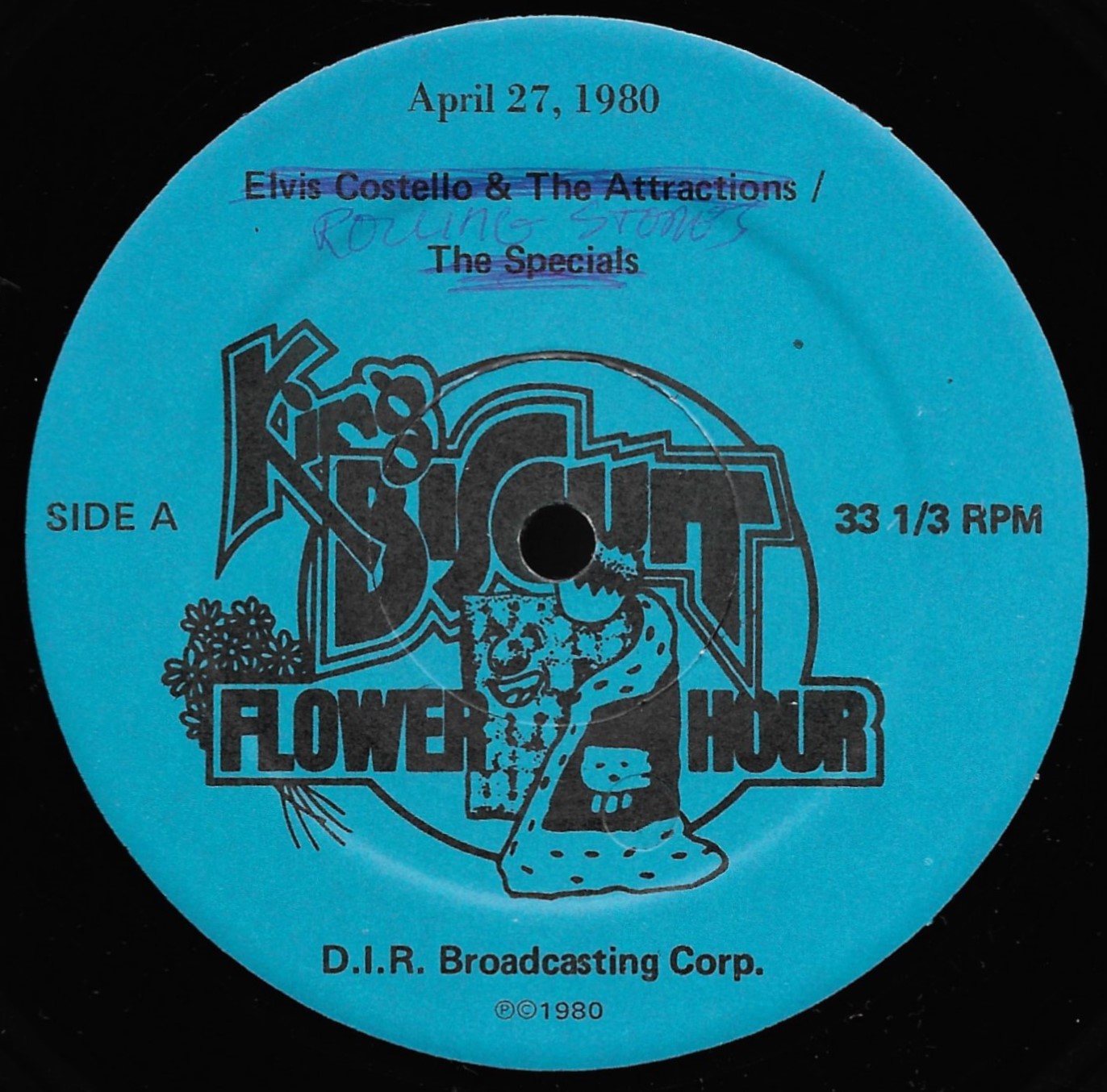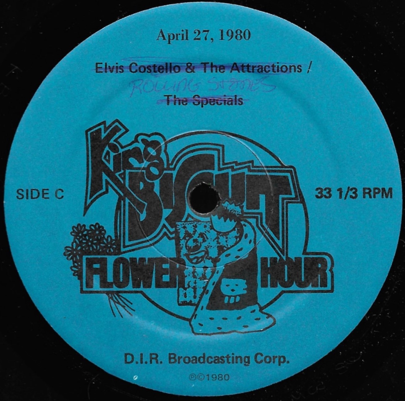 King Biscuit captured The Stones on two of their North American tours for this double vinyl release. As with most Biscuit shows, Side D is blank. The labels for this set were misprinted, identifying the artist as Elvis Costello & The Attractions. D.I.R. Broadcasting had to therefore apologize that the label was printed in error and that the label should read ‘The Rolling Stones.’ Because of this misprint, this set is extremely valuable and hard to find. My copy did not come with any of the original paperwork, which can be seen in the Discogs listing.