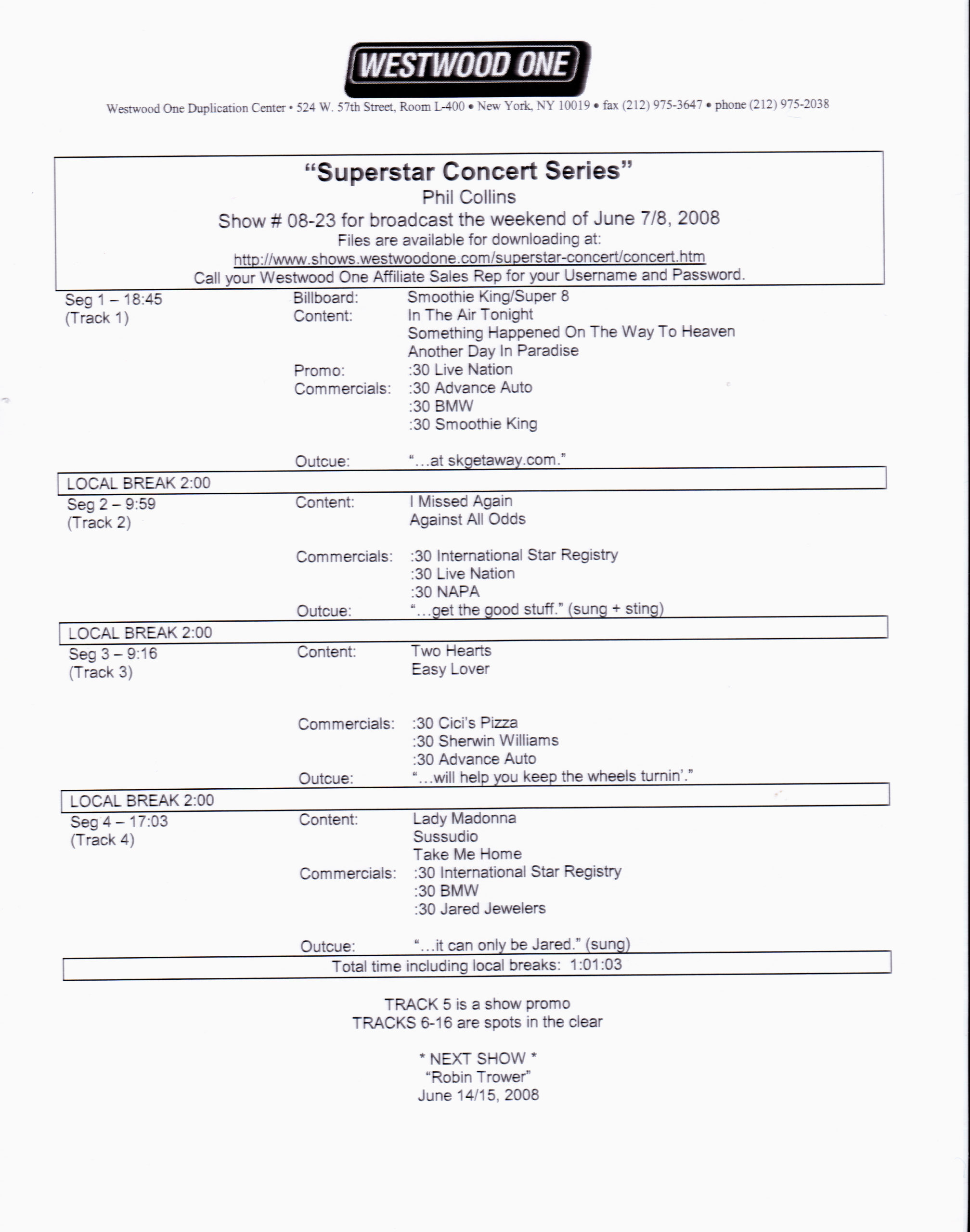 That’s it for Phil’s Testify Tour. Click HERE for radio shows from The First Final Farewell Tour.